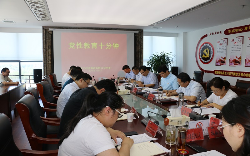 7月1日下午,永利3044noc集团公司党委召开党性教育十分钟会议。园区党工委委员、集团公司党委书记张永东主持会议,集团公司中层以上干部参加学习研讨,全资子公司、控股子公司领导班子成员列席。