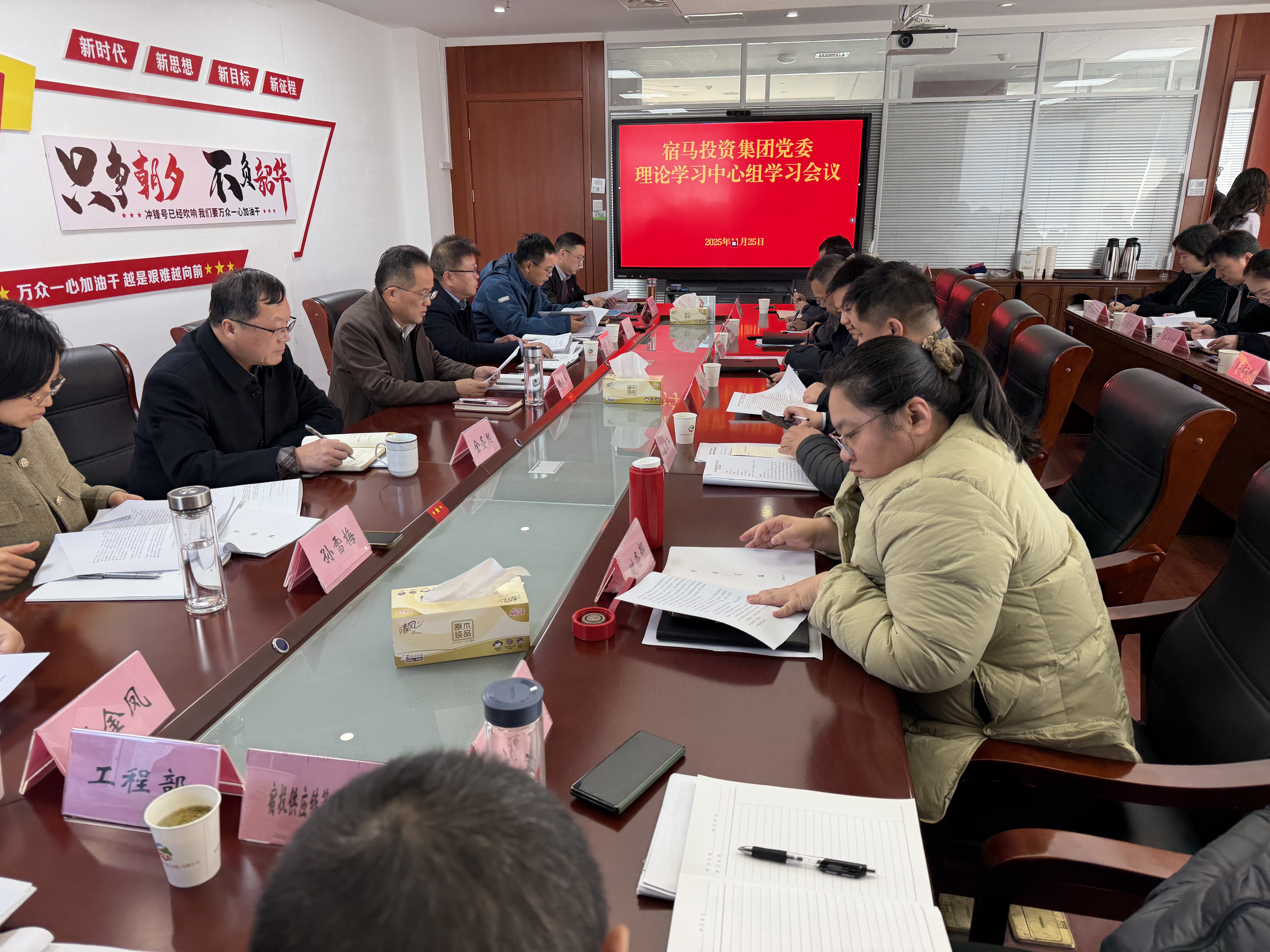 11月25日,永利3044noc集团党委召开理论学习中心组学习(扩大)会议,深入学习党的二十届四中全会精神,集团党委书记胡成兵同志主持会议并发表讲话。集团班子成员、中层干部、六大板块负责人、各党支部书记参会,园区综合部领导列席旁听。