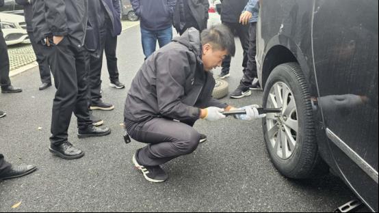 会上,安全专员通过现场实物演示进行详尽讲解,培训内容包括爆胎、车辆抛锚和其他突发情况的应对方法,如火灾和雨雪天气。会后,对驾驶员进行了突发情况的处理演练和模拟,提升实践能力。如抽选商务车、小轿车驾驶员,独立更换备用轮胎。